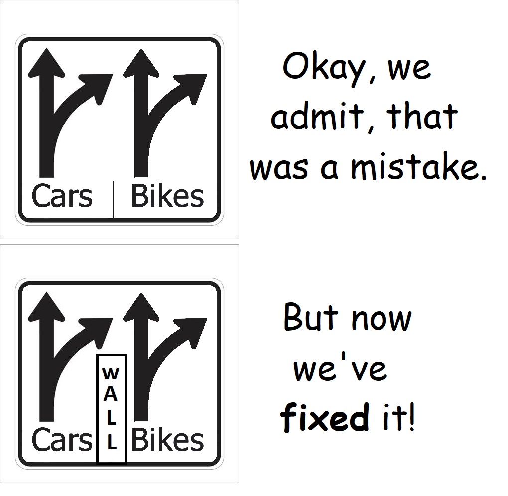 The unfortunate answer upon finding that a bike lane fails to protect bicyclists from a right hook is a tendency to double-down on separate infrastructure — since bike lanes didn’t work, we must need “protected” bike lanes.